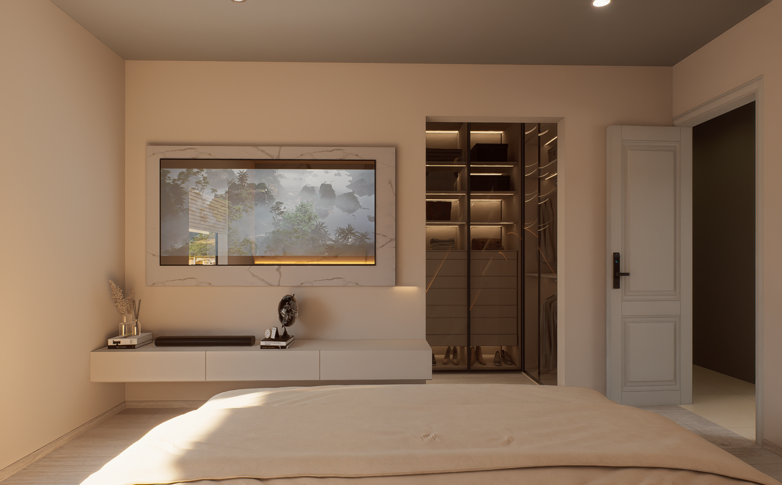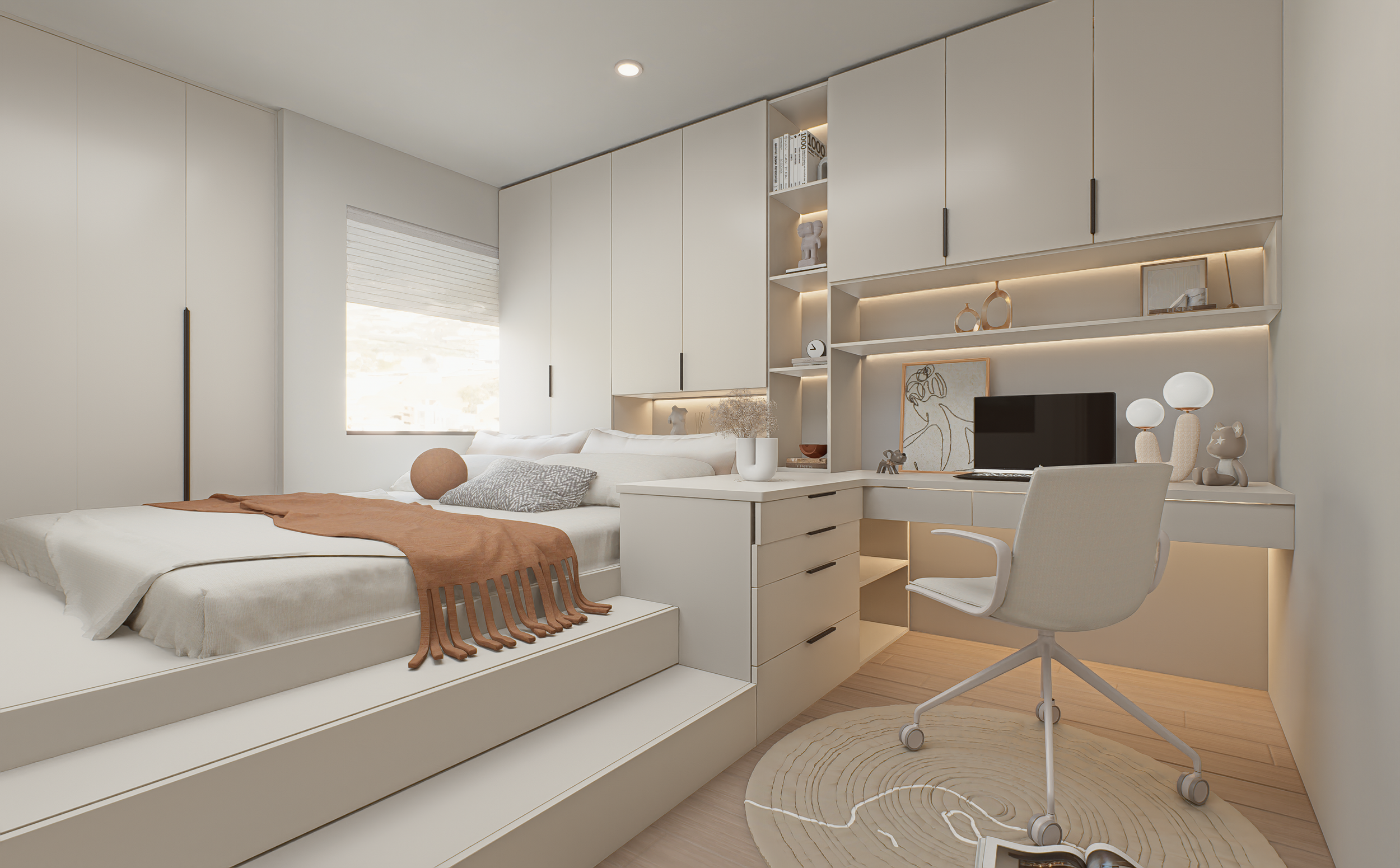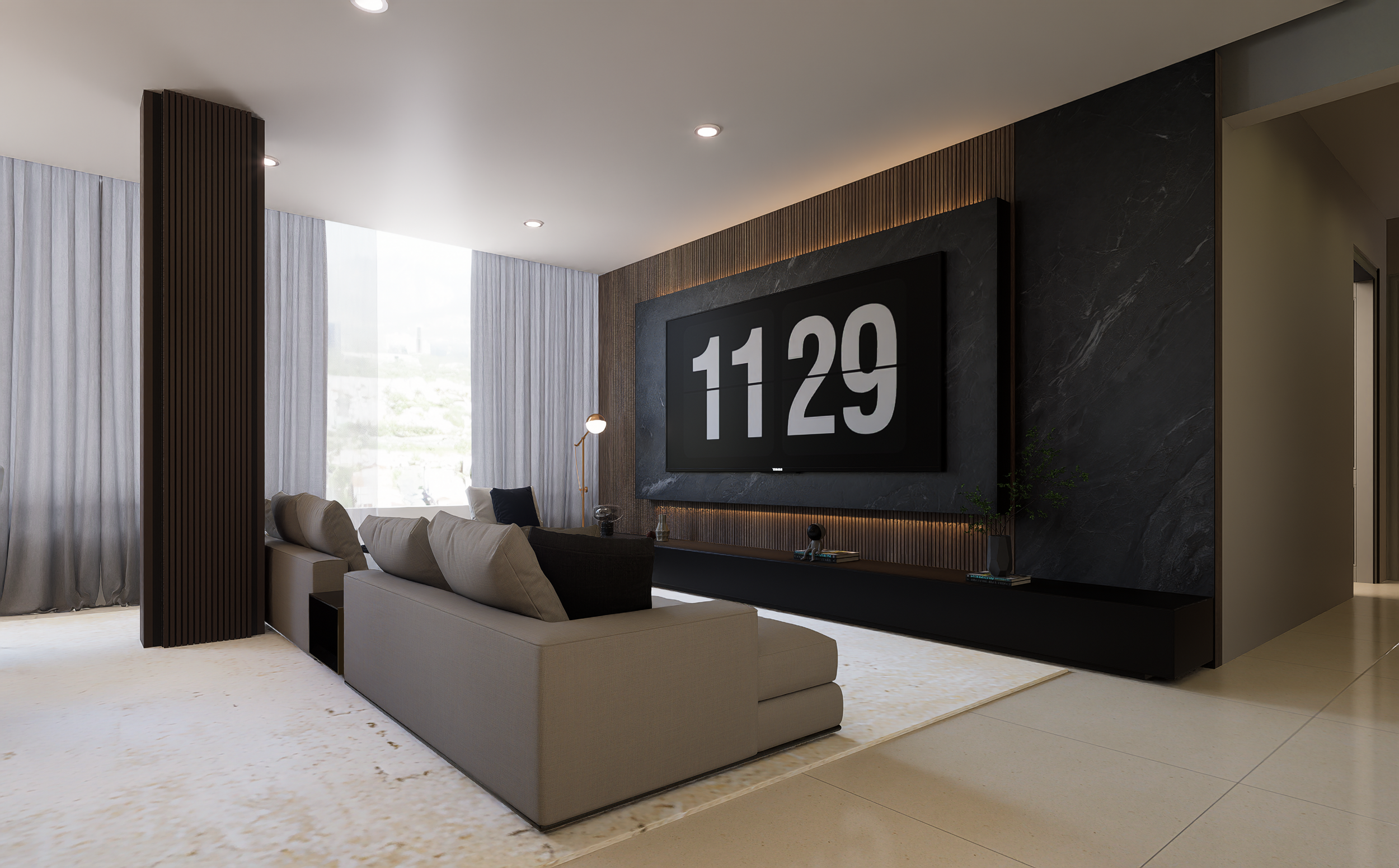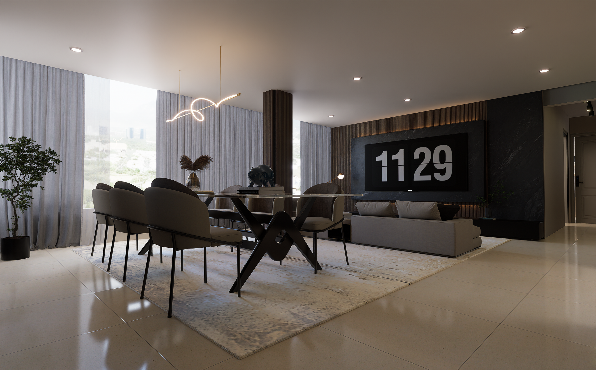 Se utilizaron materiales neutros, mobiliario contemporáneo y una paleta sobria.